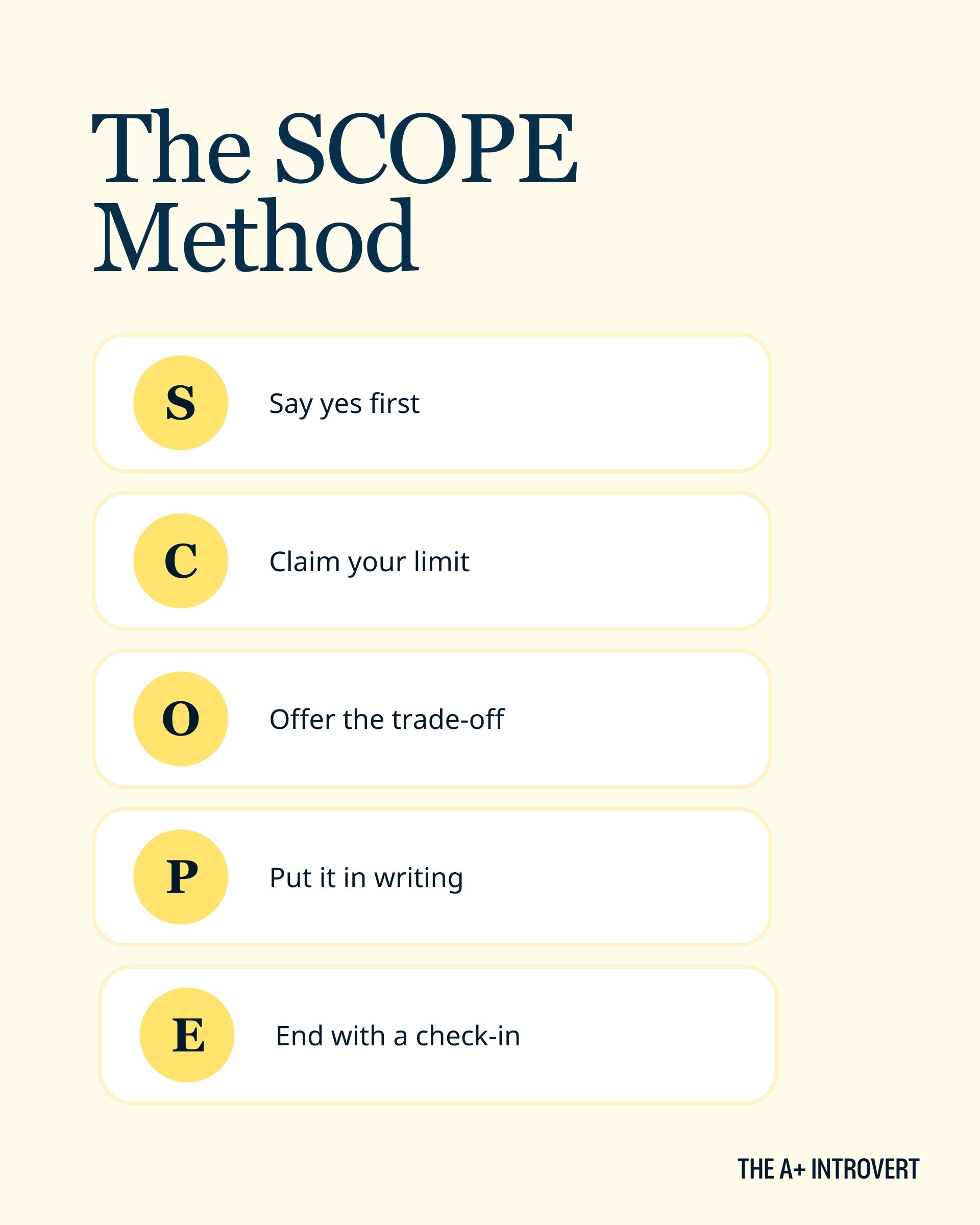 P — Put it in writing | Confirm your yes with the boundary intact Example:”If 90 minutes and one draft works, I’m in”. | Creates clarity both sides can trust. |